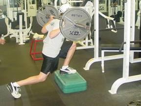 Do lunges by stepping onto a small box, like a typical aerobics class step-up box. This unveils a couple benefits you can’t get with lunges on flat ground.